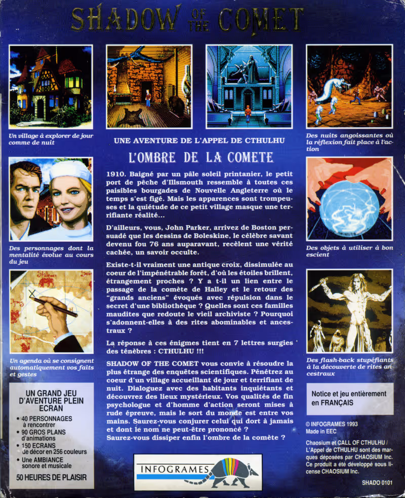 L’approche lovecraftienne d’Alone ine the Dark — manoir isolé, mystères occultes, créatures indicibles — a façonné tout un genre. Dans les années 90, chez Infogrames, Bruno Bonell et son équipe ont poursuivi cette voie avec Shadow of the Comet et Prisoner of Ice, des jeux d’aventure qui plongeaient le joueur dans des intrigues inspirées des nouvelles de Lovecraft. Presque 10 ans plus tard, des titres comme Eternal Darkness (GameCube 2002) ou Call of Cthulhu: Dark Corners of the Earth (PC 2005) ont repris le flambeau, explorant la folie et la peur de l’inconnu à travers des graphismes 3D modernes, une ambiance sonore particulère et des mécaniques innovantes (gestion de la santé mentale, hallucinations, etc.).