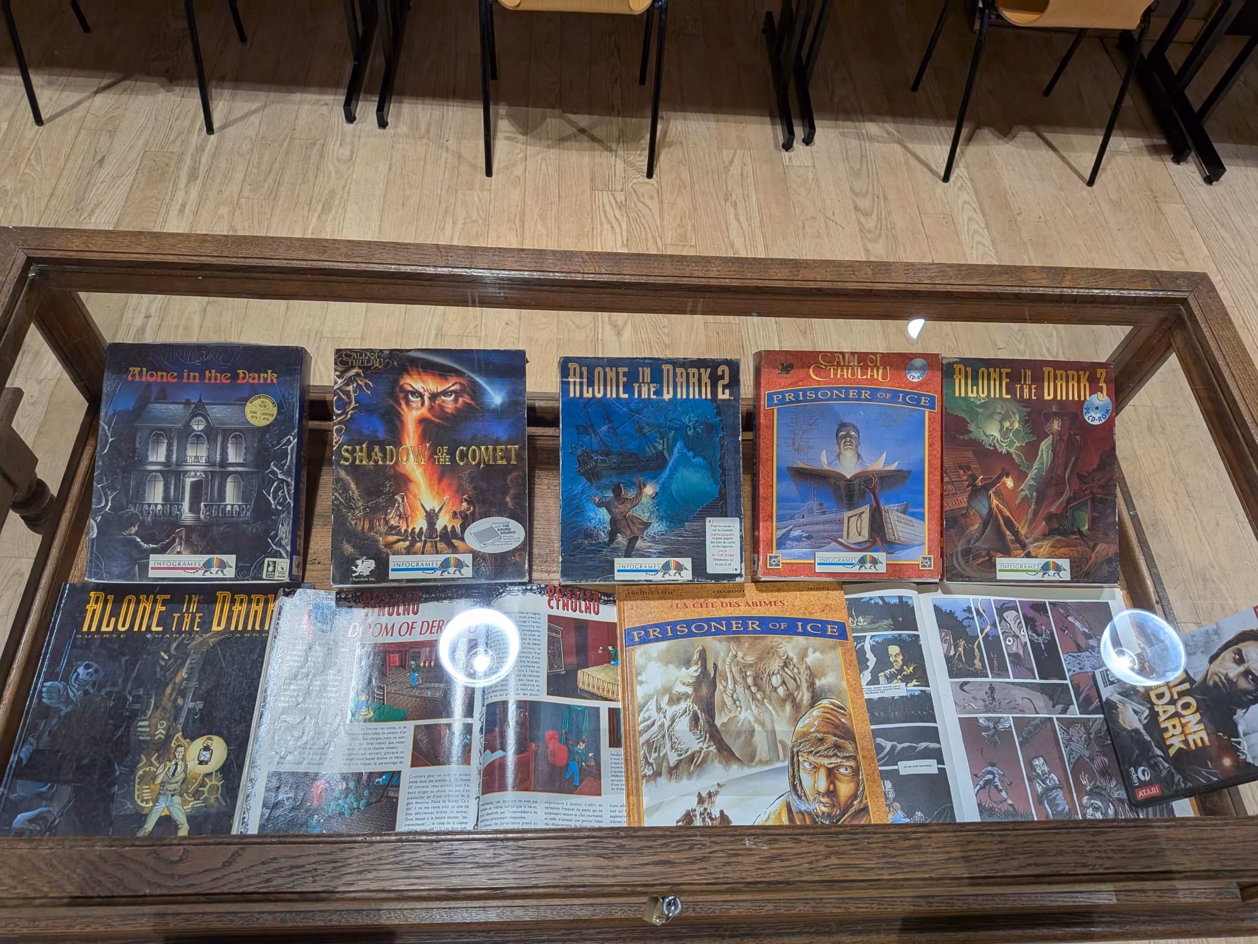 Avec Samuel, membre de l’association, j’ai eu l’immense privilège de rencontrer Hubert Chardot, scénariste des trois jeux mythiques Alone in the Dark, Shadow of the Comet, Prisoner of Ice, ainsi que Christiane Sgorlon, développeuse sur les deux derniers titres. Ces échanges ont été un voyage dans les coulisses vidéoludiques de l’univers à l’origine d’un nouveau genre : le survival horror.